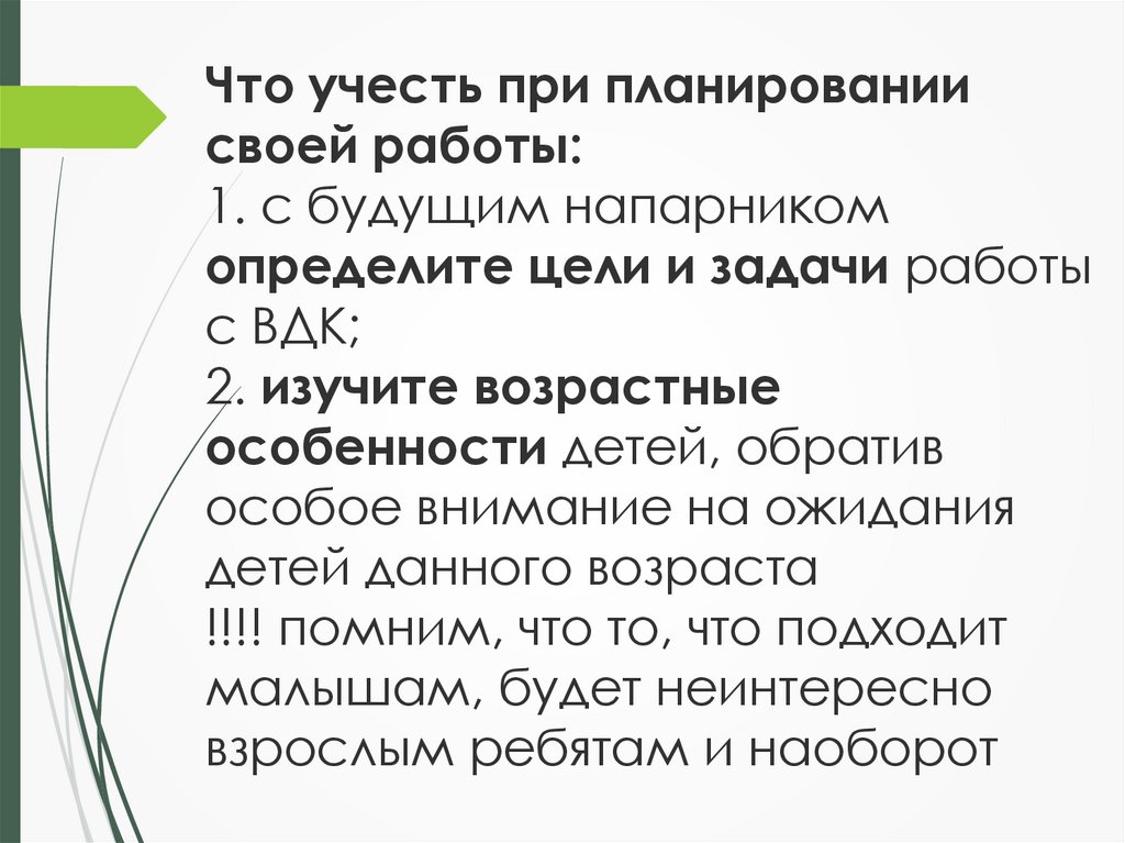 Что учесть при планированиисвоей работы: