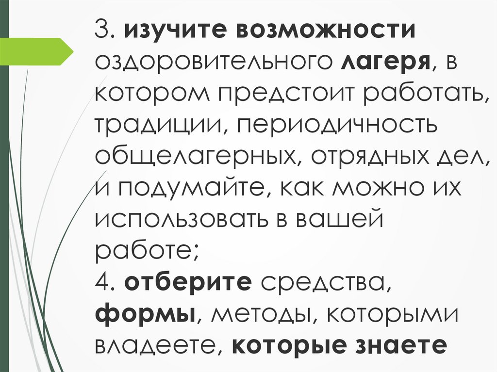 3. изучите возможностиоздоровительного лагеря, в