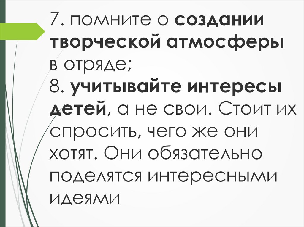 7. помните о созданиитворческой атмосферы