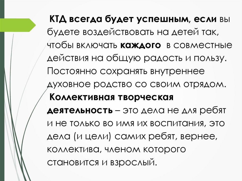 КТД всегда будет успешным, если выбудете воздействовать на детей так,