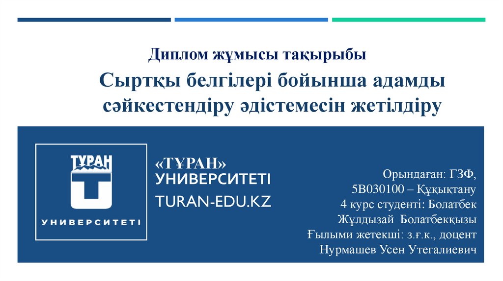 Диплом жұмысы тақырыбыСыртқы белгілері бойынша адамды