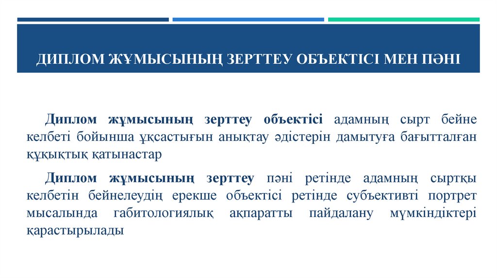 Диплом жұмысының зерттеу пәні ретінде адамның сыртқы