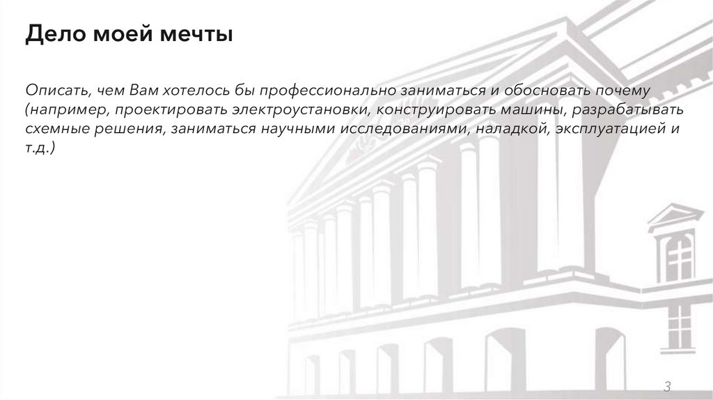 (например, проектировать электроустановки, конструировать машины, разрабатывать