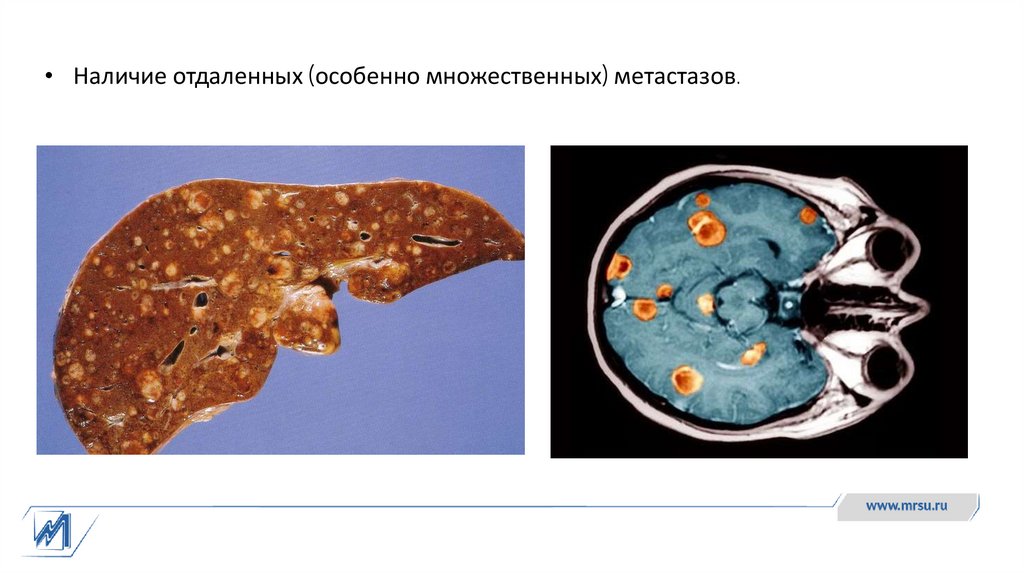 • Наличие отдаленных (особенно множественных) метастазов.8.