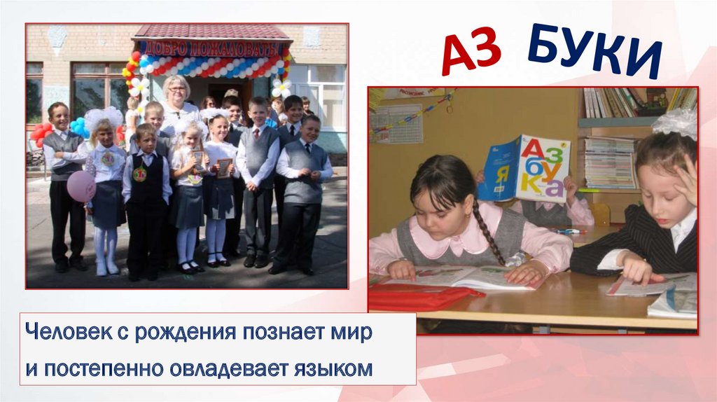 Человек с рождения познает мири постепенно овладевает языком