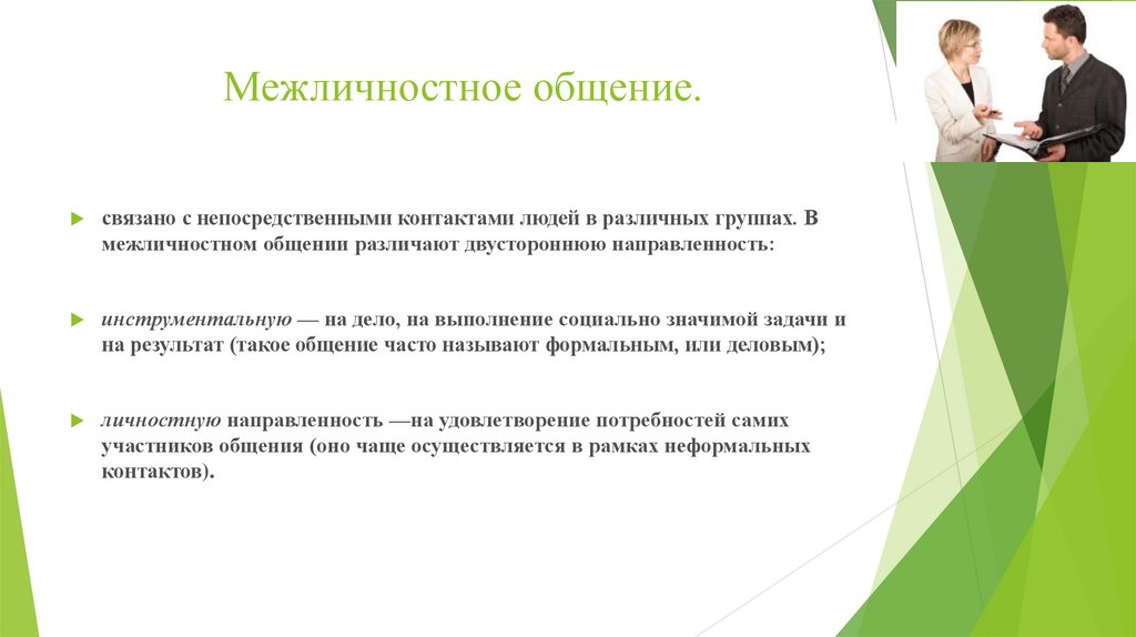Межличностное общение.связано с непосредственными контактами людей в различных группах. В