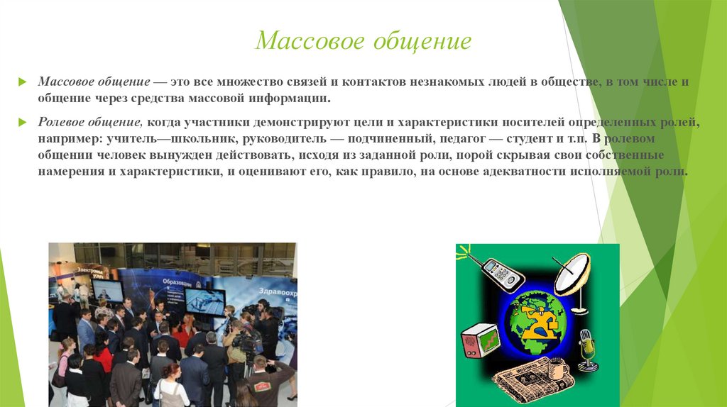 Массовое общениеМассовое общение — это все множество связей и контактов незнакомых людей в обществе, в том числе и