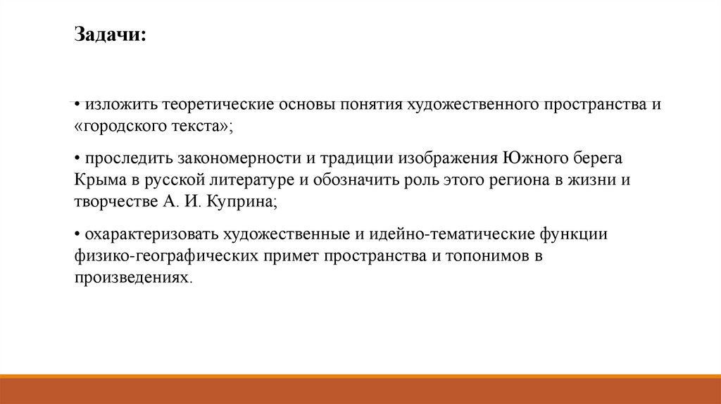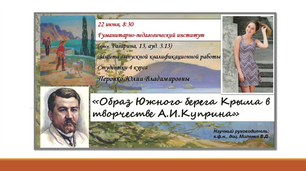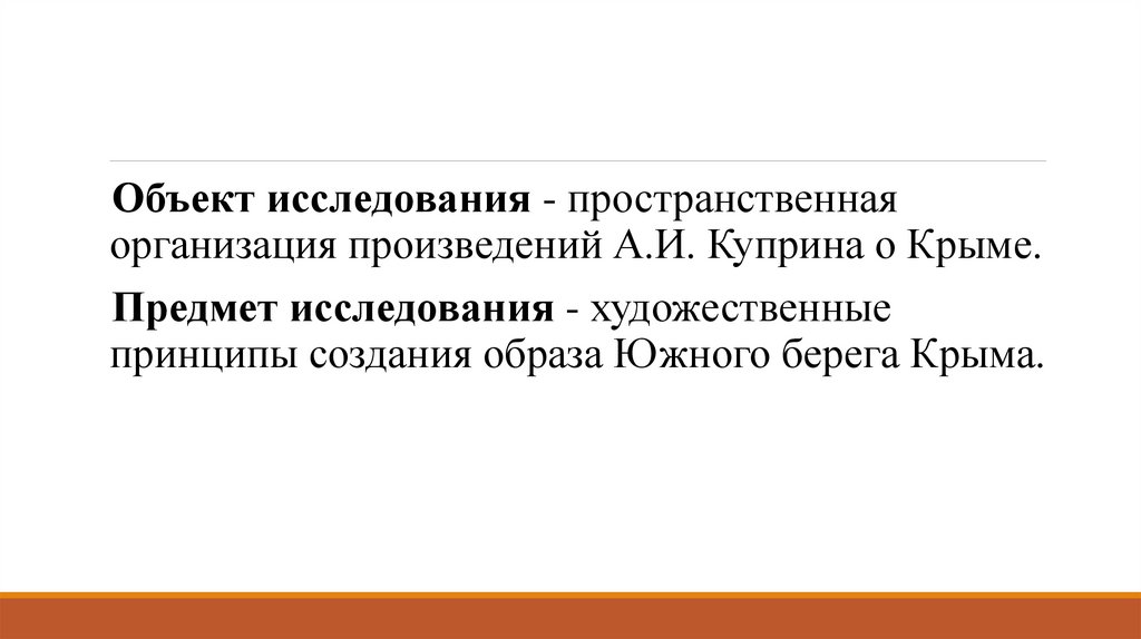 Объект исследования - пространственнаяорганизация произведений А.И. Куприна о Крыме.