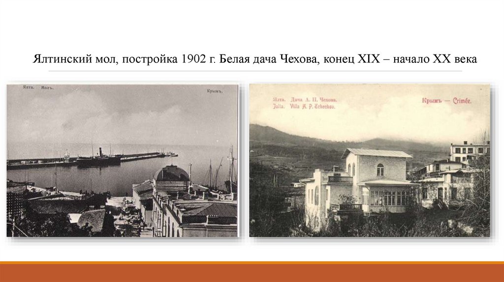 Ялтинский мол, постройка 1902 г. Белая дача Чехова, конец XIX – начало XX века7.