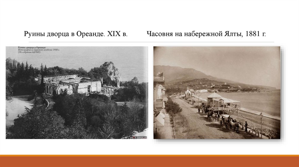 Руины дворца в Ореанде. XIX в.Часовня на набережной Ялты, 1881 г.