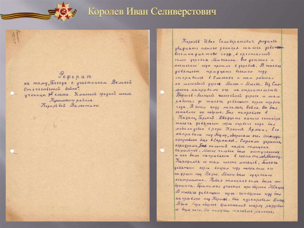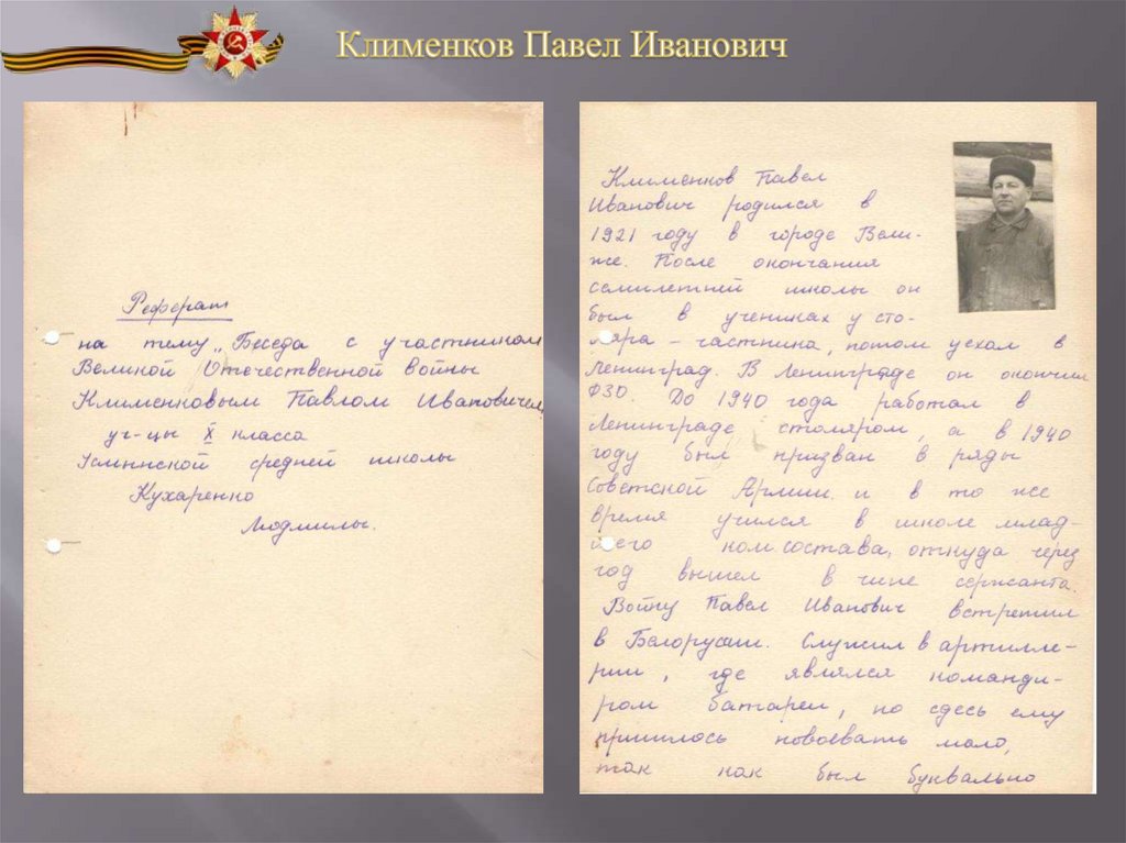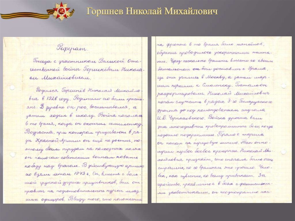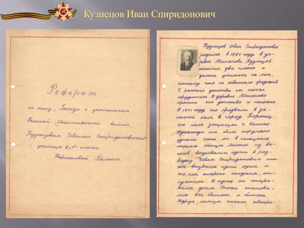 на тему «Беседа с участником Великой Отечественной войны»