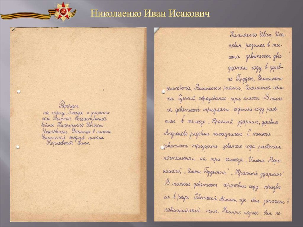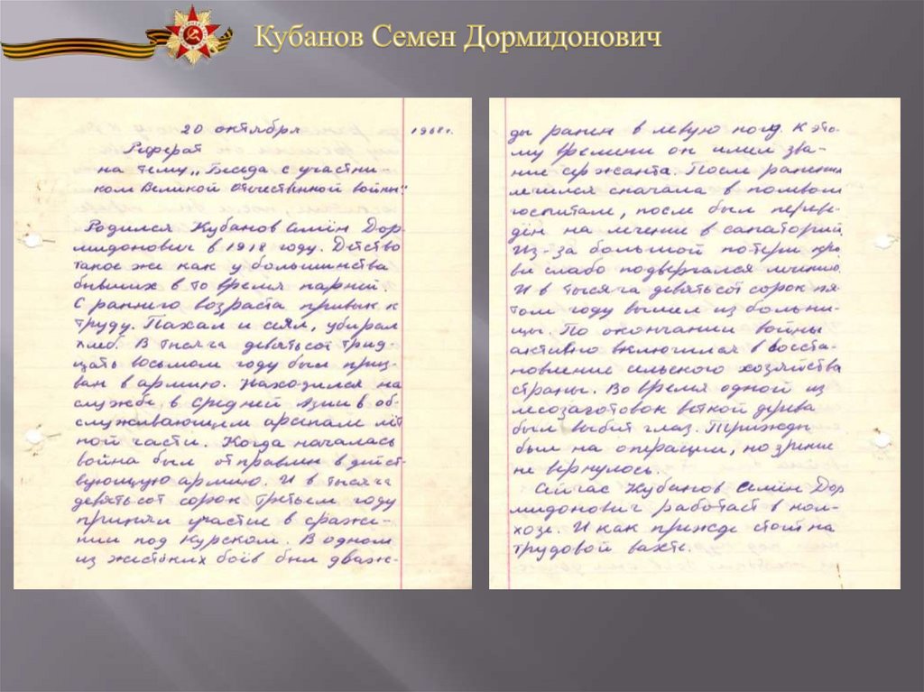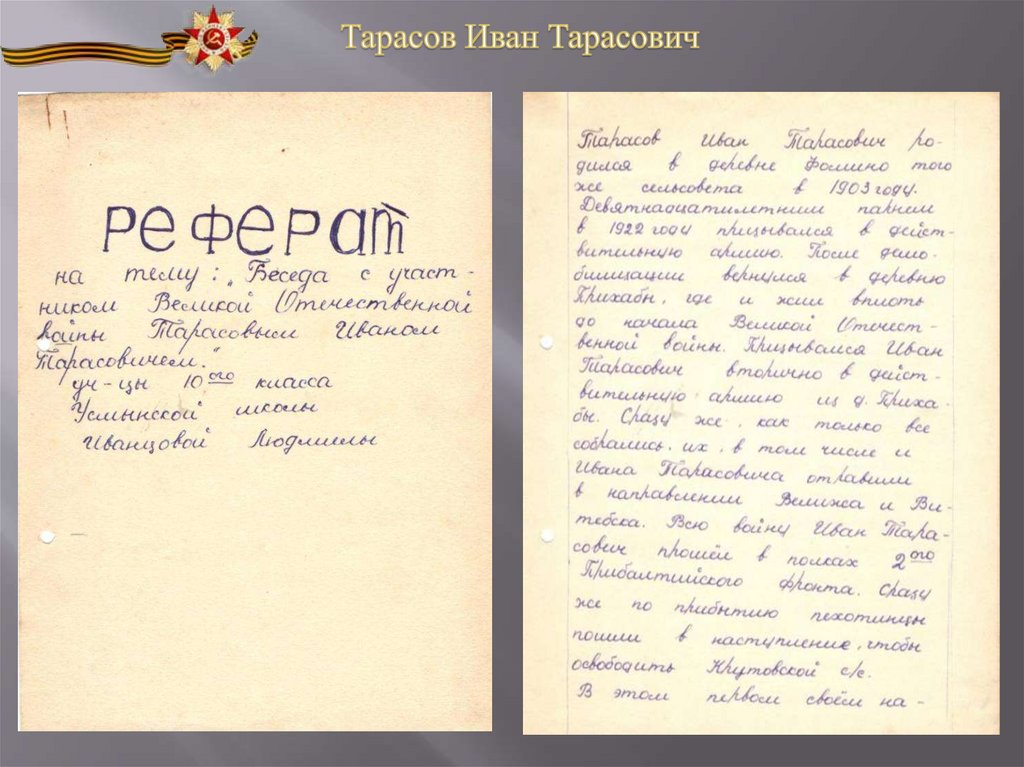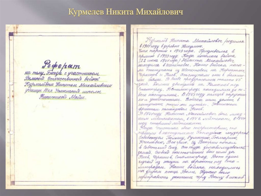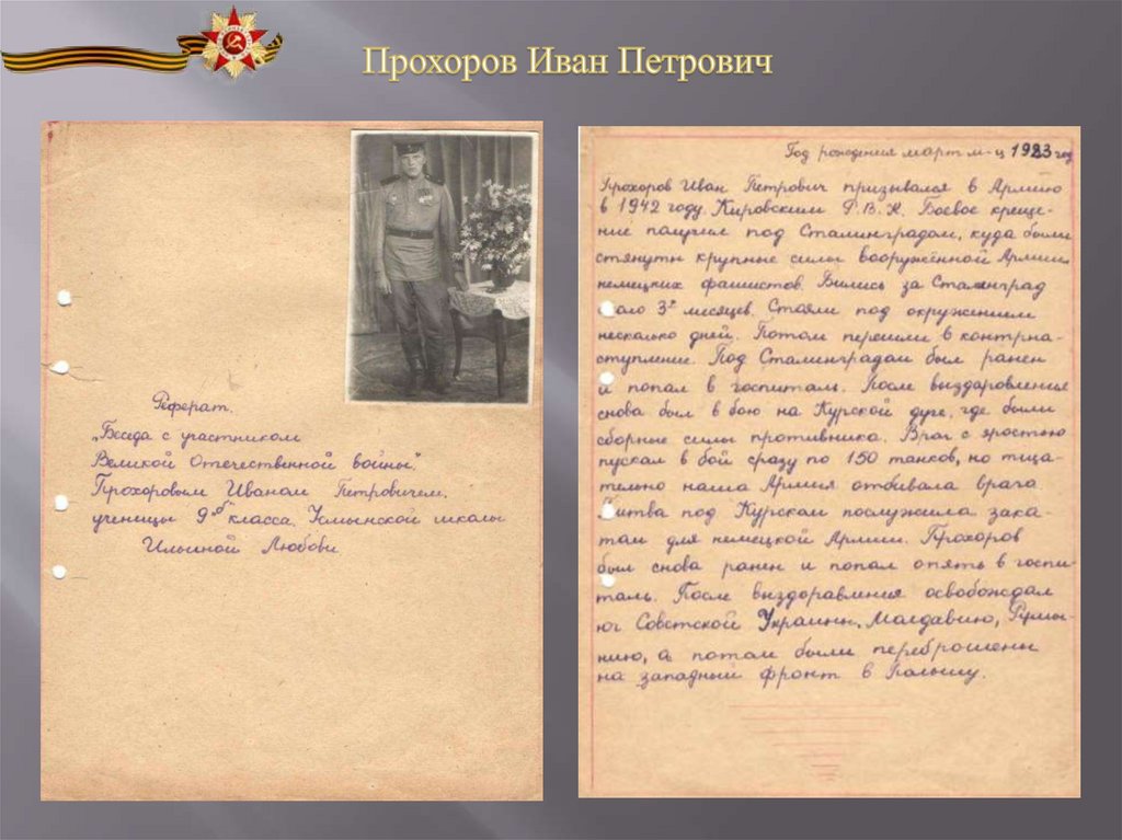 на тему «Беседа с участником Великой Отечественной войны»