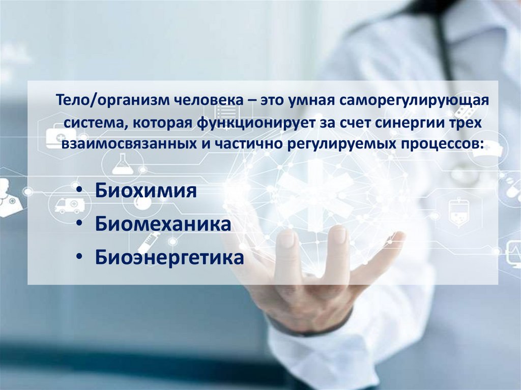 Тело/организм человека – это умная саморегулирующаясистема, которая функционирует за счет синергии трех