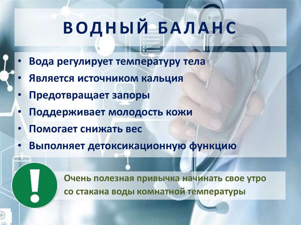 ВОДНЫЙ БАЛАНСВода регулирует температуру тела