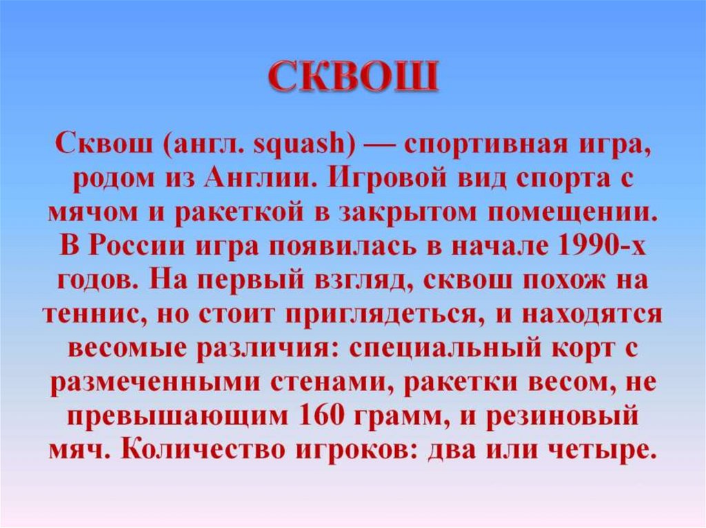 Спорт. Виды спорта