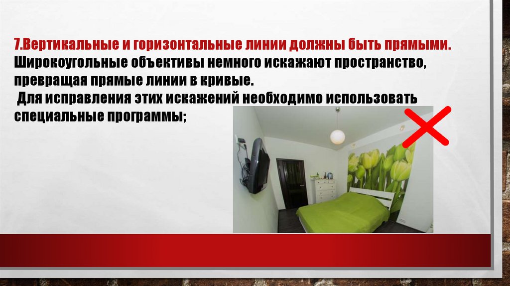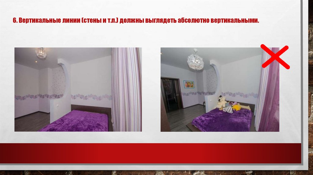 6. Вертикальные линии (стены и т.п.) должны выглядеть абсолютно вертикальными.17.