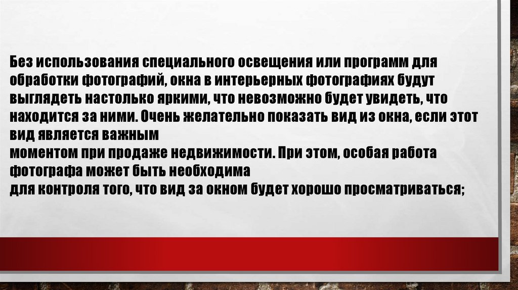 Без использования специального освещения или программ дляобработки фотографий, окна в интерьерных фотографиях будут