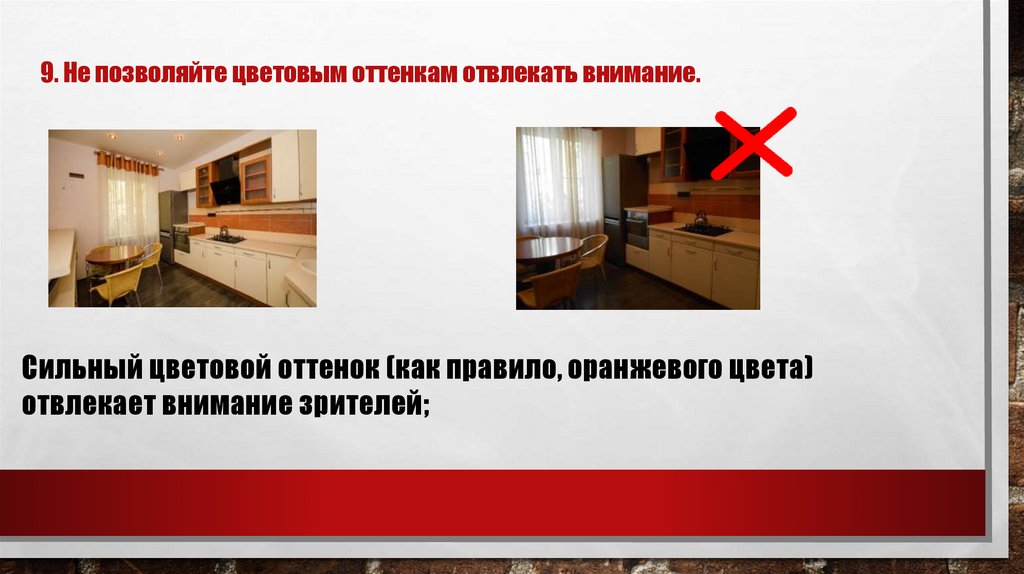 9. Не позволяйте цветовым оттенкам отвлекать внимание.Сильный цветовой оттенок (как правило, оранжевого цвета)