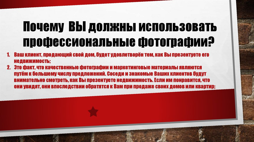 Почему ВЫ должны использоватьпрофессиональные фотографии?