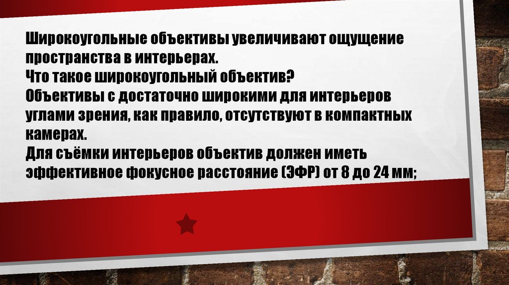 Широкоугольные объективы увеличивают ощущениепространства в интерьерах.