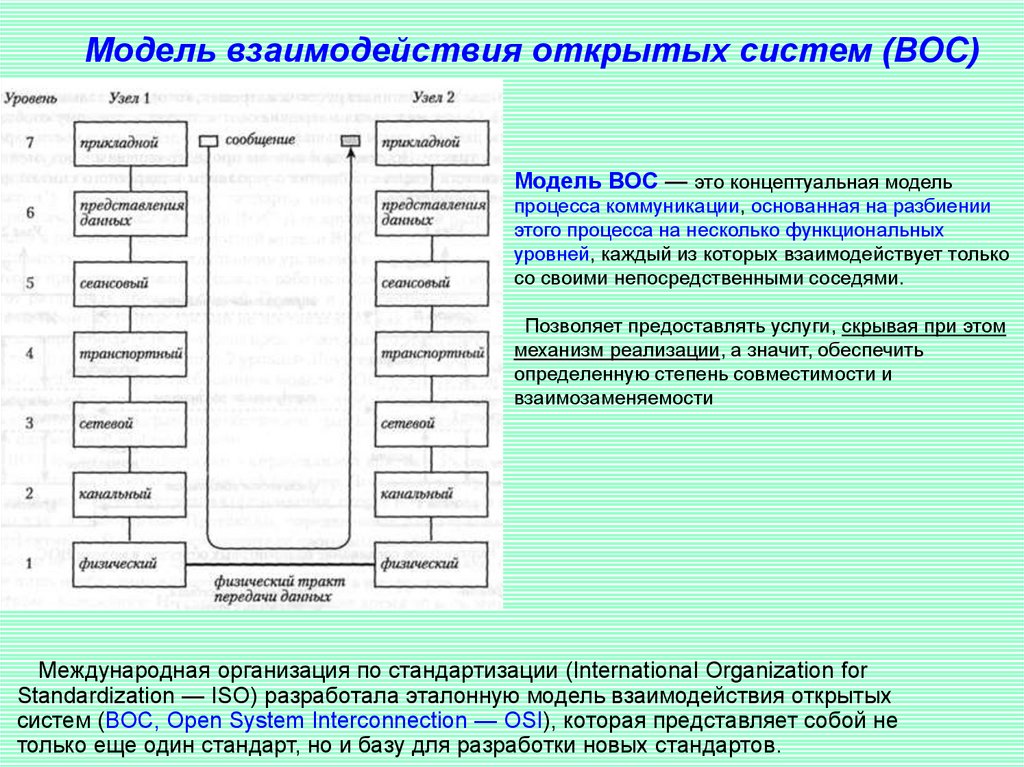 систем (ВОС, Open System Interconnection — OSI), которая представляет собой не