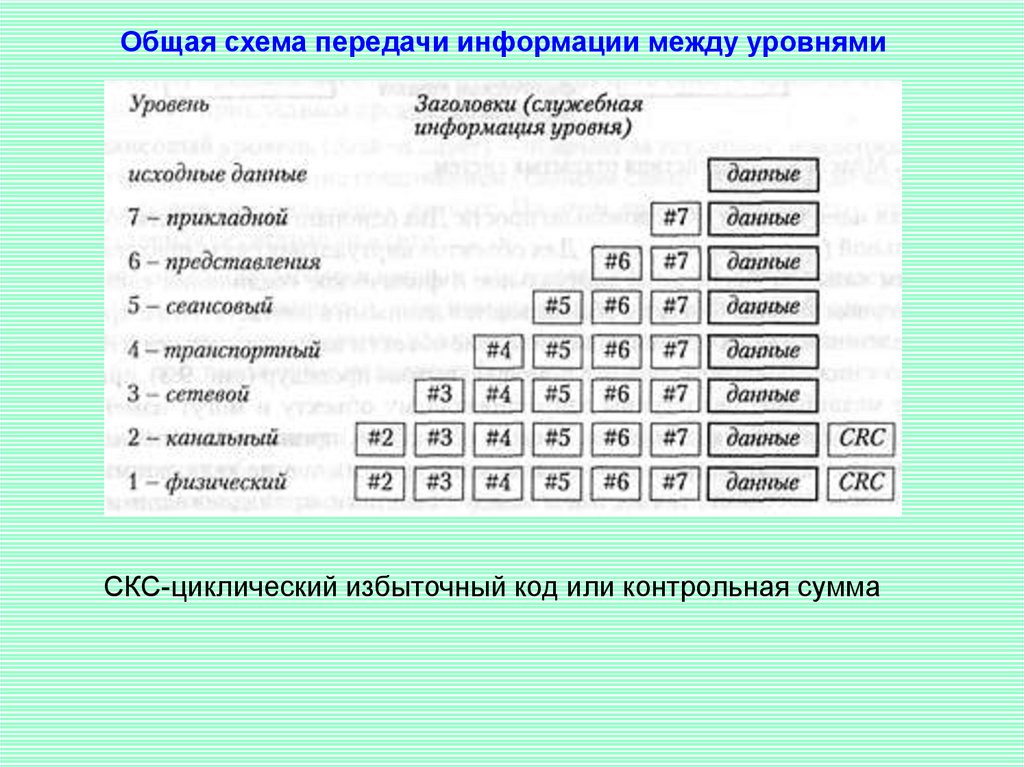 Общая схема передачи информации между уровнямиСКС-циклический избыточный код или контрольная сумма