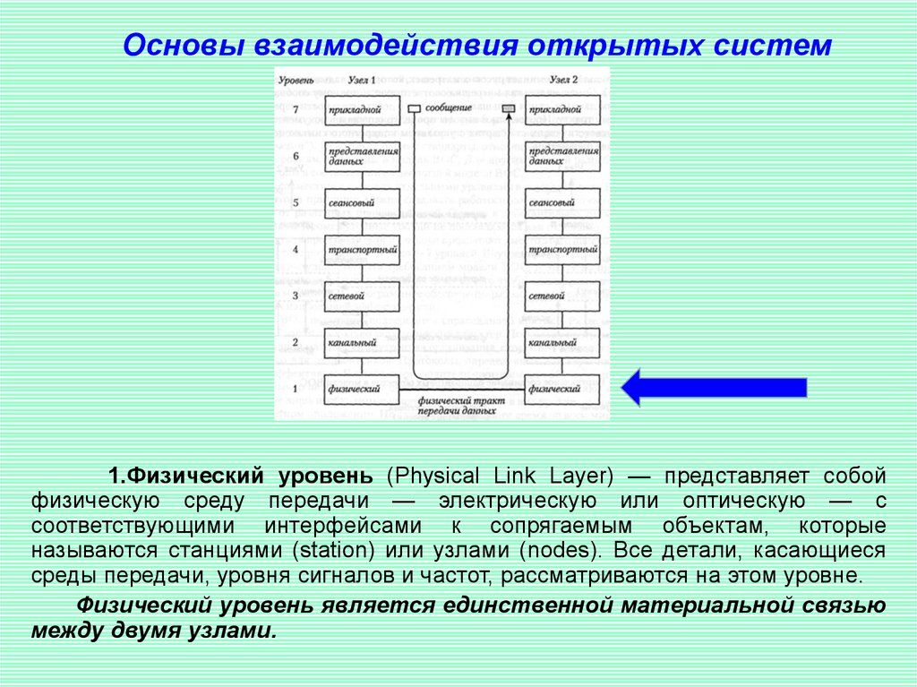 Основы взаимодействия открытых систем1.Физический уровень (Physical Link Layer) — представляет собой