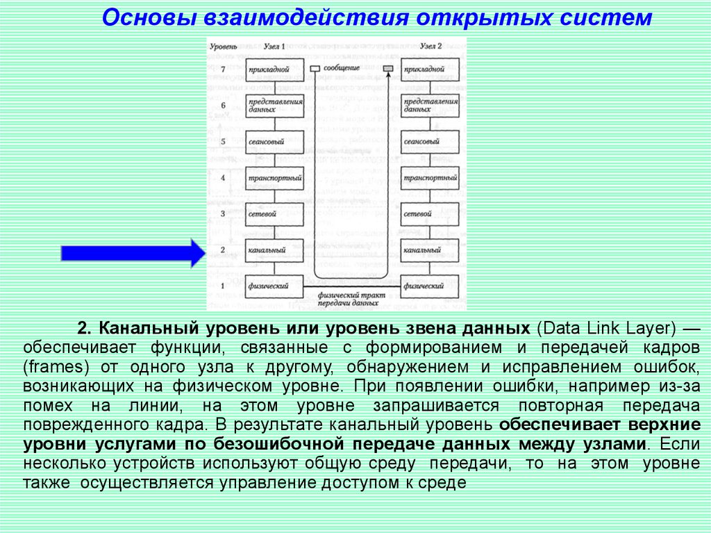Основы взаимодействия открытых систем2. Канальный уровень или уровень звена данных (Data Link Layer) —