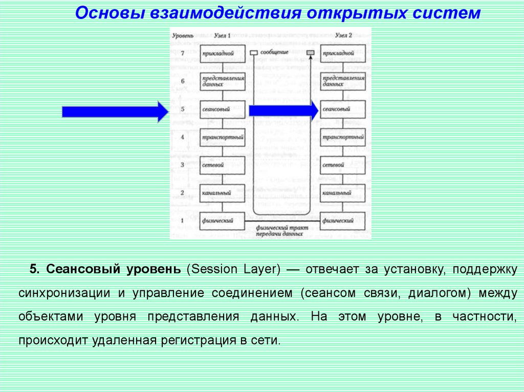 Основы взаимодействия открытых систем5. Сеансовый уровень (Session Layer) — отвечает за установку, поддержку