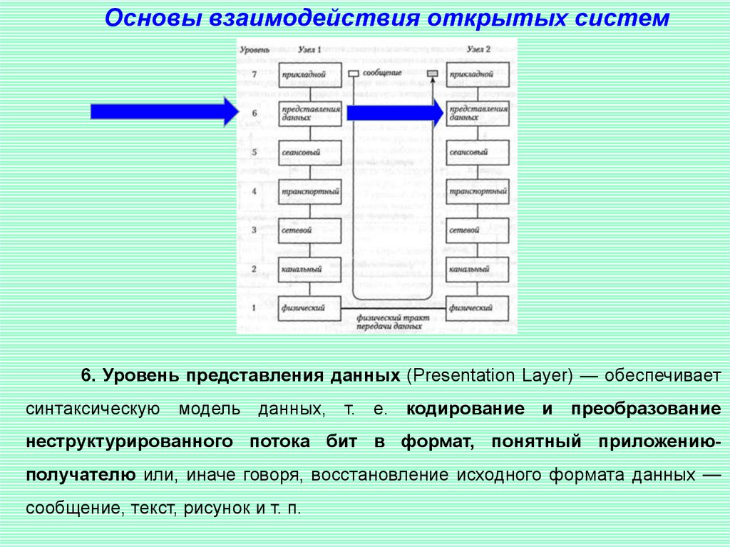 Основы взаимодействия открытых систем6. Уровень представления данных (Presentation Layer) — обеспечивает