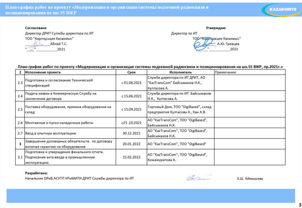План-график работ по проекту «Модернизация и организация системы подземной радиосвязи ипозиционирования на шх 55 ВЖР