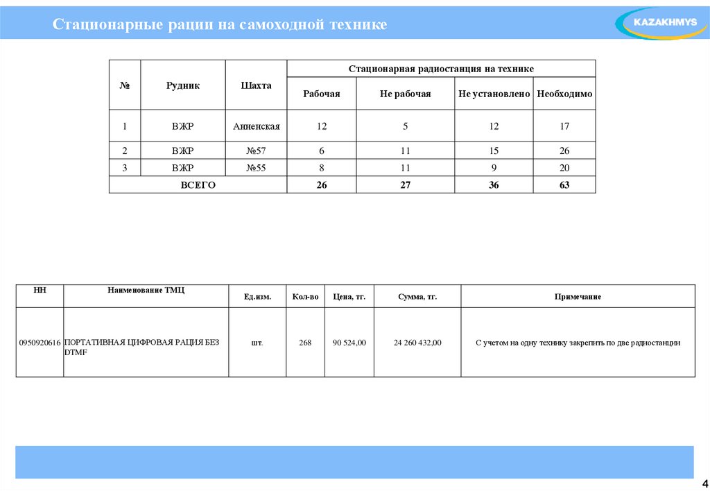Система позиционирования персонала и транспорта на месторождениях ТОО «Корпорация Казпхмыс» г. Жезказган