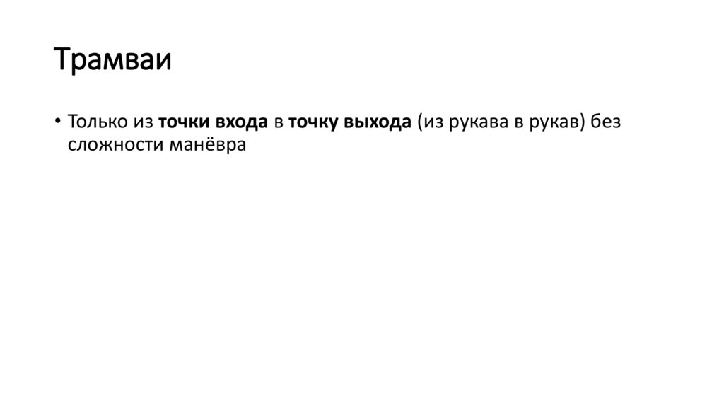 Трамваи• Только из точки входа в точку выхода (из рукава в рукав) без