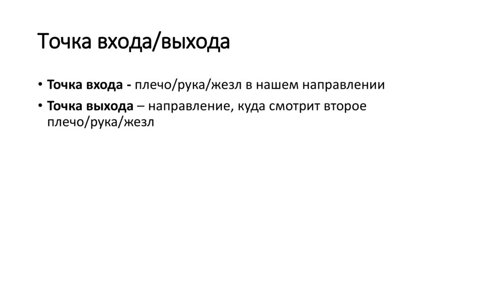 Точка входа/выхода• Точка входа - плечо/рука/жезл в нашем направлении