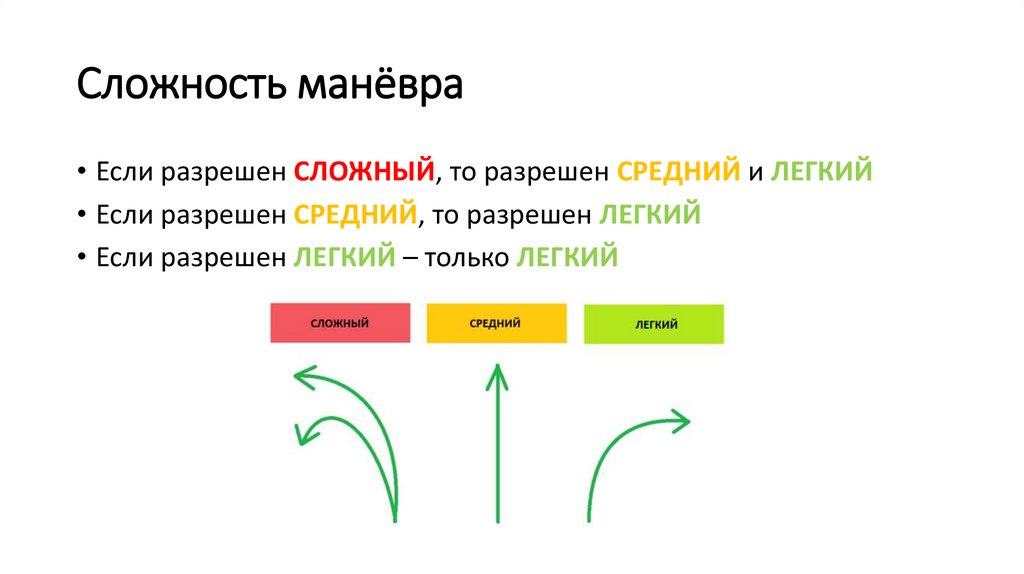 Сложность манёвра• Если разрешен СЛОЖНЫЙ, то разрешен СРЕДНИЙ и ЛЕГКИЙ