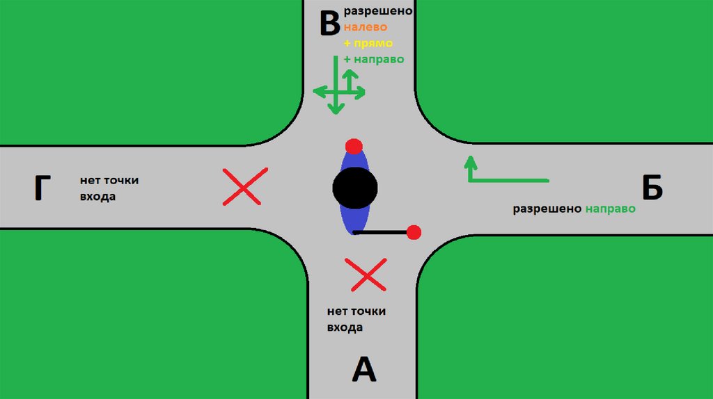 ПРАВИЛА ПРОЕЗДА:1. Точка входа в нашем направлении (чтобы начать движение)