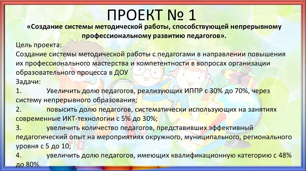 ПРОЕКТ № 1«Создание системы методической работы, способствующей непрерывному
