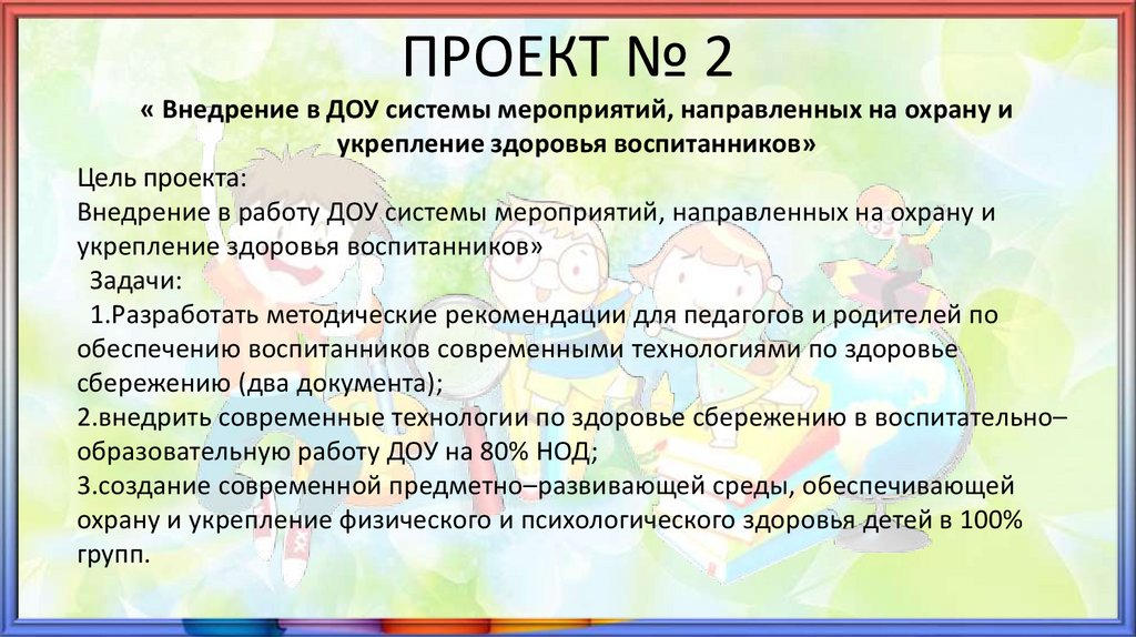 ПРОЕКТ № 2« Внедрение в ДОУ системы мероприятий, направленных на охрану и