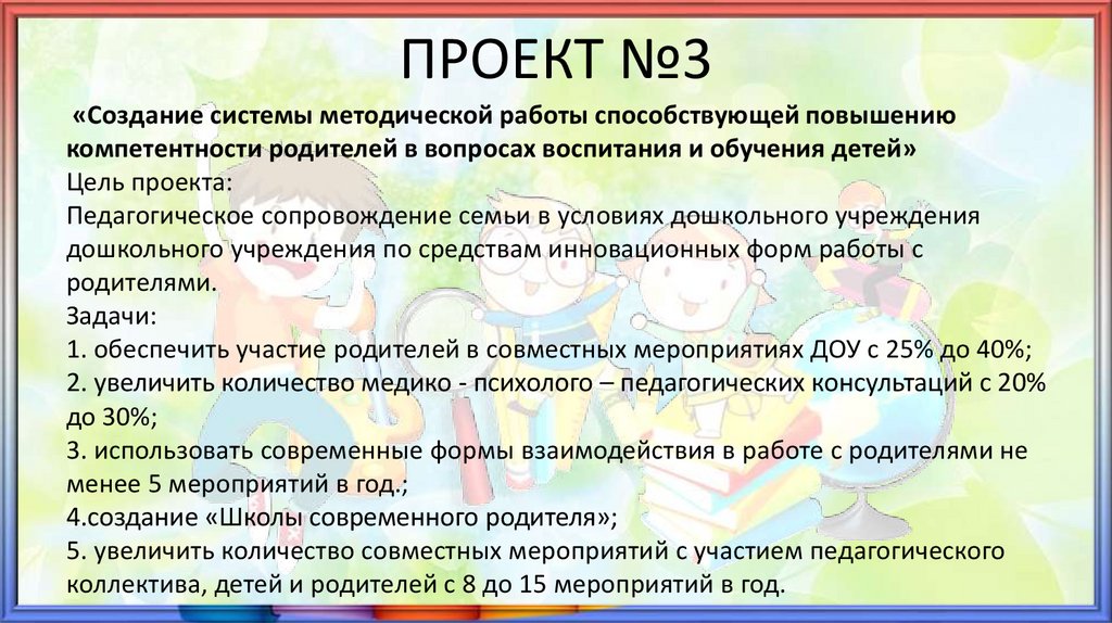 ПРОЕКТ №3«Создание системы методической работы способствующей повышению