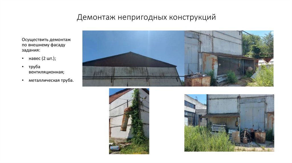 Демонтаж непригодных конструкцийОсуществить демонтаж