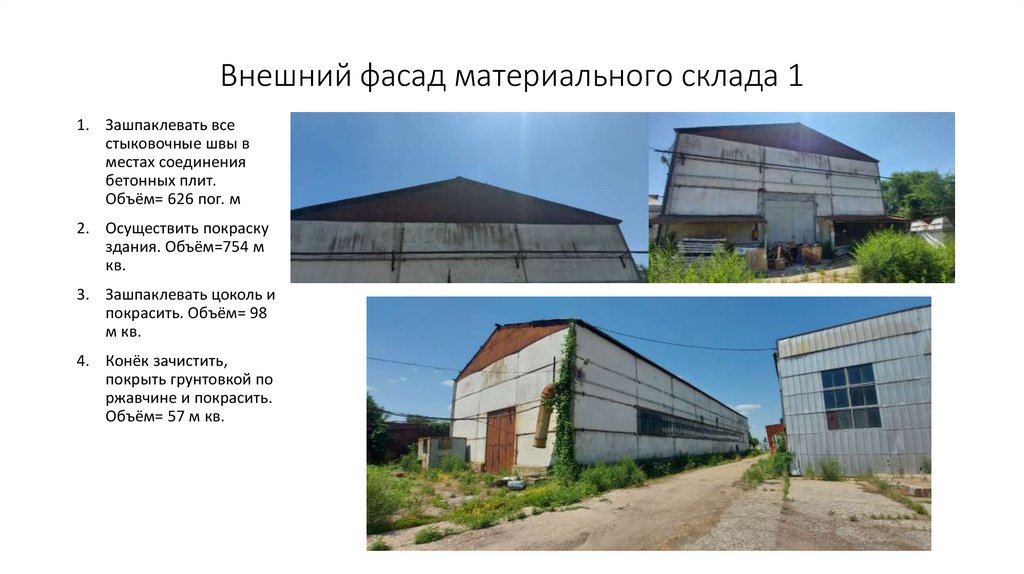 Внешний фасад материального склада 11. Зашпаклевать все