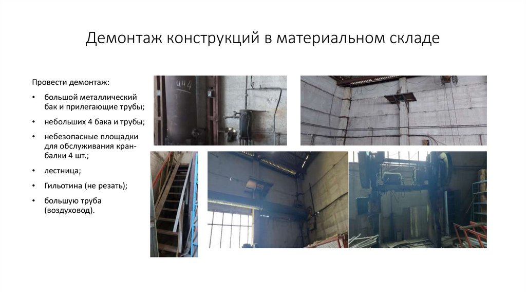 Демонтаж конструкций в материальном складеПровести демонтаж:
