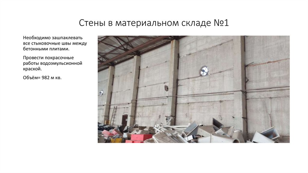 Стены в материальном складе №1Необходимо зашпаклевать