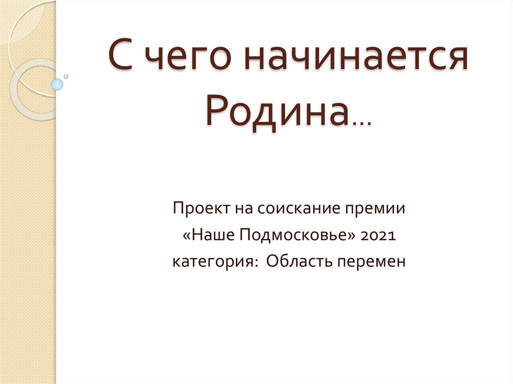 С чего начинается Родина. Проект на соискание премии «Наше Подмосковье»