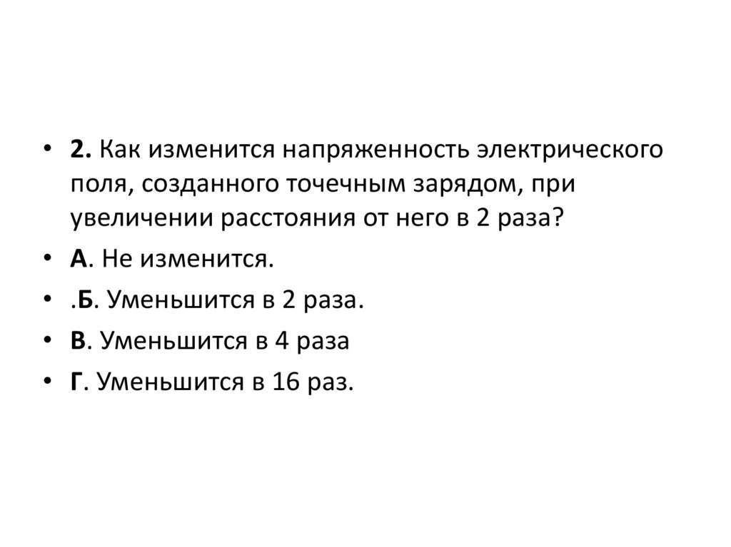 • 2. Как изменится напряженность электрическогополя, созданного точечным зарядом, при