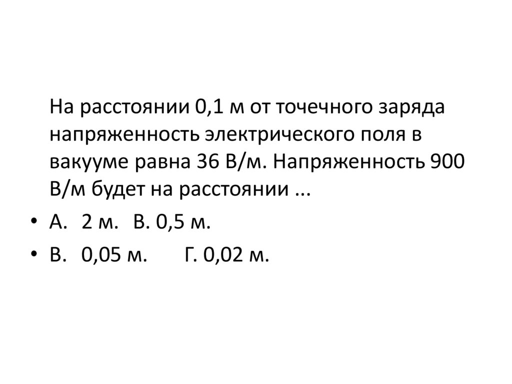 вакууме равна 36 В/м. Напряженность 900
