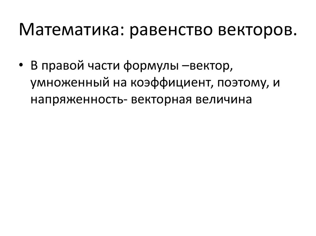 Математика: равенство векторов.• В правой части формулы –вектор,