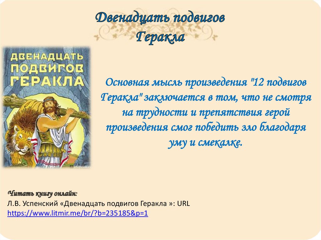 Читать книгу онлайн:Л.В. Успенский «Двенадцать подвигов Геракла »: URL