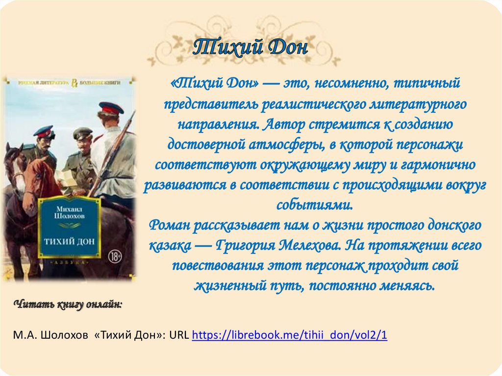 Читать книгу онлайн:М.А. Шолохов «Тихий Дон»: URL https://librebook.me/tihii_don/vol2/1