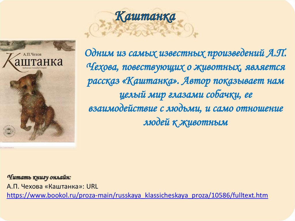 Читать книгу онлайн:А.П. Чехова «Каштанка»: URL
